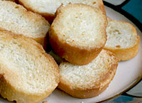 Suggestion: Top with an endless variety of food combinations such as meats and cheeses, cheese spreads, sandwich fillings, vegetables, and more. See Crab Crostini.